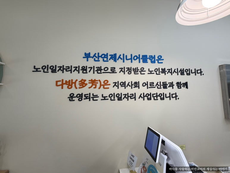 부산 연제시니어 클럽에서 운영하시는 곳인데, 아메리카노 1500원, 팥빙수가 2000원으로 가격이 정말 착했다.