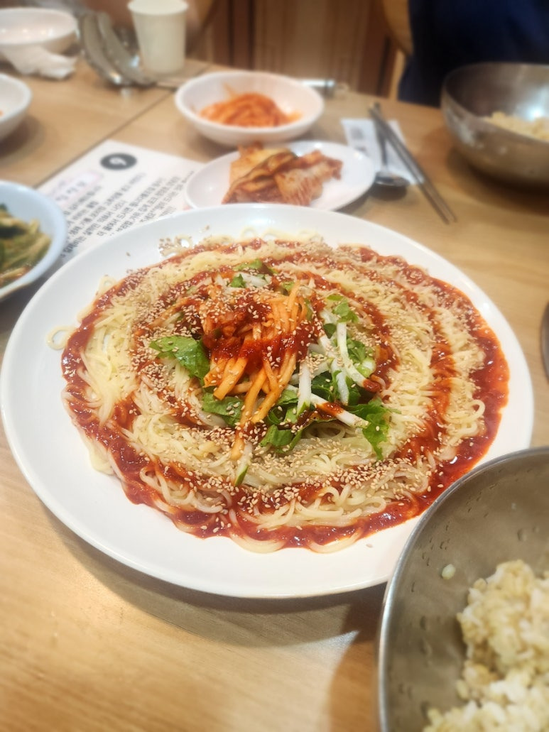 비빔 칼국수! 적당히 칼칼한 맛이 일품이다.