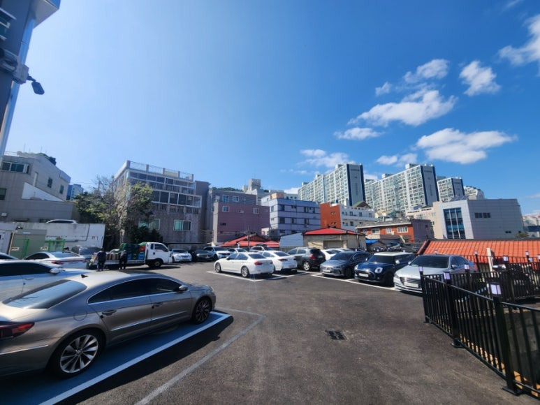 새로 생긴 곳답게 입구에는 '돈 세다 잠들게 하소서'등 재미있는 문구로 장식된 '개업 화분'들이 도열해있었다. 무엇보다도 부산에서는 보기 드문 너른 주차장이 구비되어 있다.